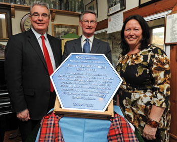 The great-great-grandson of James "Paraffin" Young unveiled the Royal Society of Chemistry landmark blue plaque in his ancestor's honour at the Bennie Museum, Bathgate today.