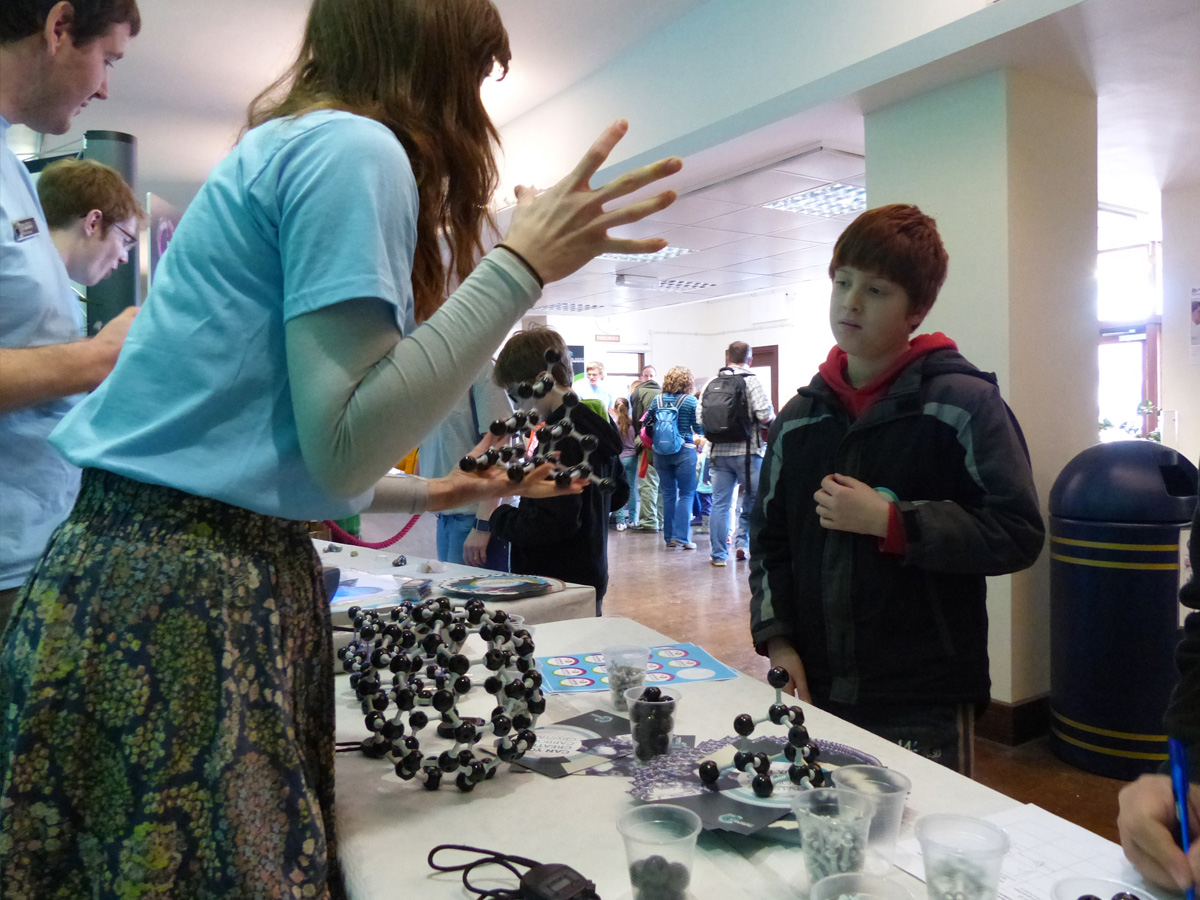 Participants both young and old helped us to catch an art thief at our chromatography stand, learned how to make their own crystals at home and were challenged to see how quickly they could build their own diamond! One of our volunteers explained why our crystal-growing activity elicited a wide-eyed response from children and adults alike: “Those attending our stand were really interested in the chemistry behind crystals, and the link back to handwarmers helped to put across the message that chemistry is present in everyday life.”