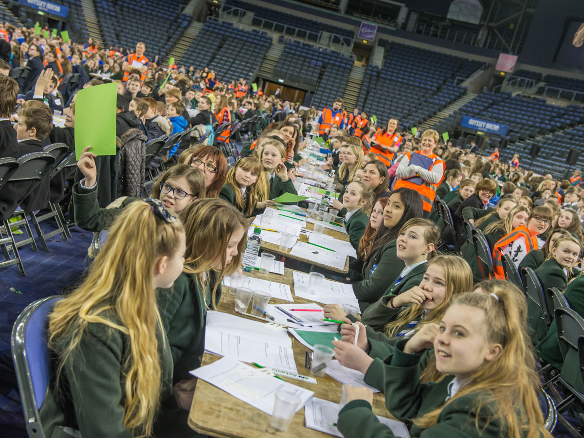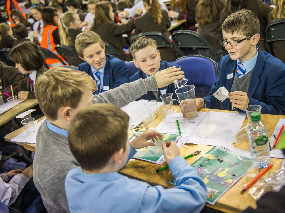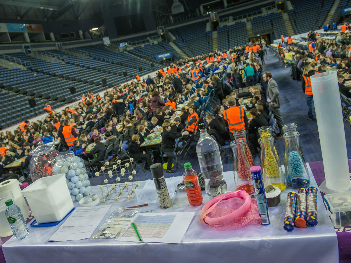 Primary and secondary school children from schools across Northern Ireland gathered at the Odyssey Arena in Belfast to take part in a massive enquiry-based lesson and tried their hand at solving a "crime" using science.