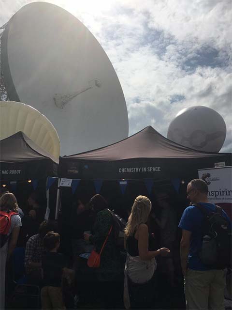 Over the weekend of 22 July, I volunteered for the Royal Society Chemistry at the Bluedot festival, a science based event held at Cheshire’s Jodrell Bank observatory. It was an intriguing mix of scientific lectures, stalls and comedy during the day, with an evening music festival. As someone who looks to support science and the Royal Society of Chemistry, when the local education coordinator Katayune Presland called, I jumped at the chance to be on their 'Chemistry in Space' stand.