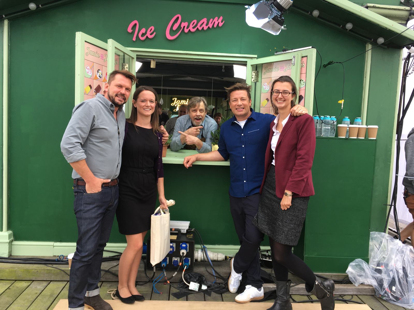 In supporting the production of the programme, we visited the set during filming at Jamie and Jimmy’s café on Southend Pier, and took the chance to present Mark with the chemistry set he never had as a child.