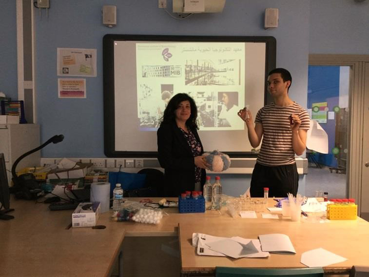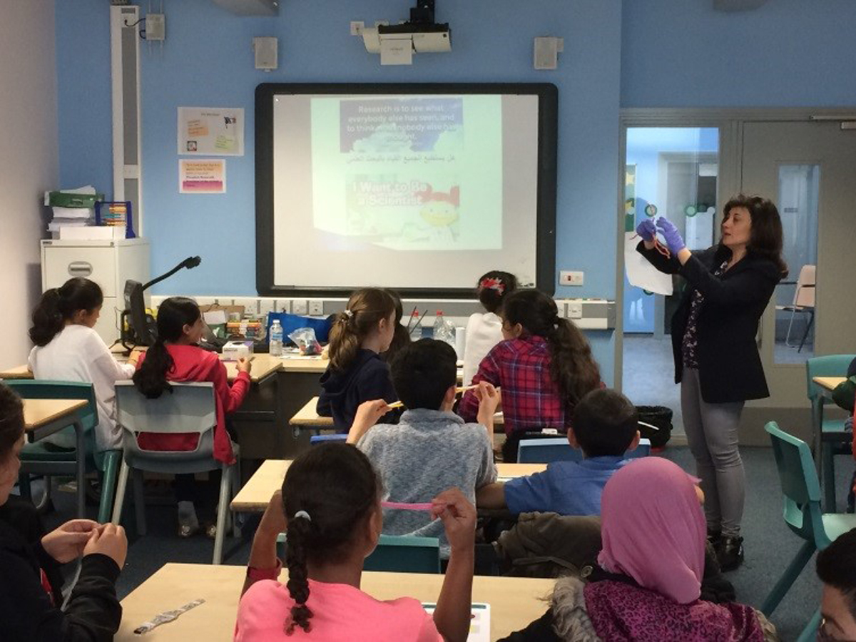 The Al-Manar Arabic School is a community-led initiative run on the site of Burnage Academy in South Manchester. On 21 May Dr Hanan Messiha, a researcher from the Manchester Institute of Biotechnology, who is originally from Egypt, visited the school. She gave two one-hour sessions, starting each with an introduction to the University of Manchester and scientific research.