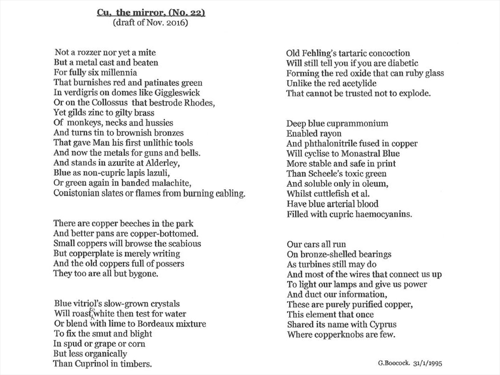 I have also been a bit of a closet poet for decades and have written about my connected fascinations. In 2000 I collated 30 poems about the chemical elements, entitling the collection Some Elemental Chemystery. I hope that my poetry too can show people that the arts and the sciences do overlap and cross-pollinate.