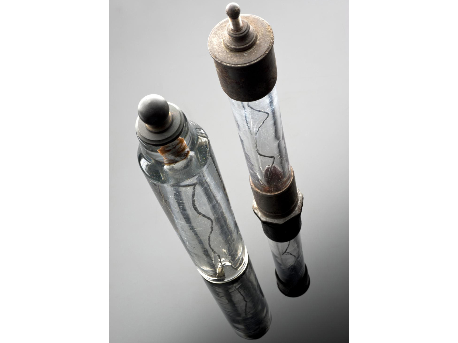 These eudiometers are said to have been used by the famous French chemist Marcellin Berthelot, noted for his developments and theorizing in thermochemistry and his synthesis of organic compounds.