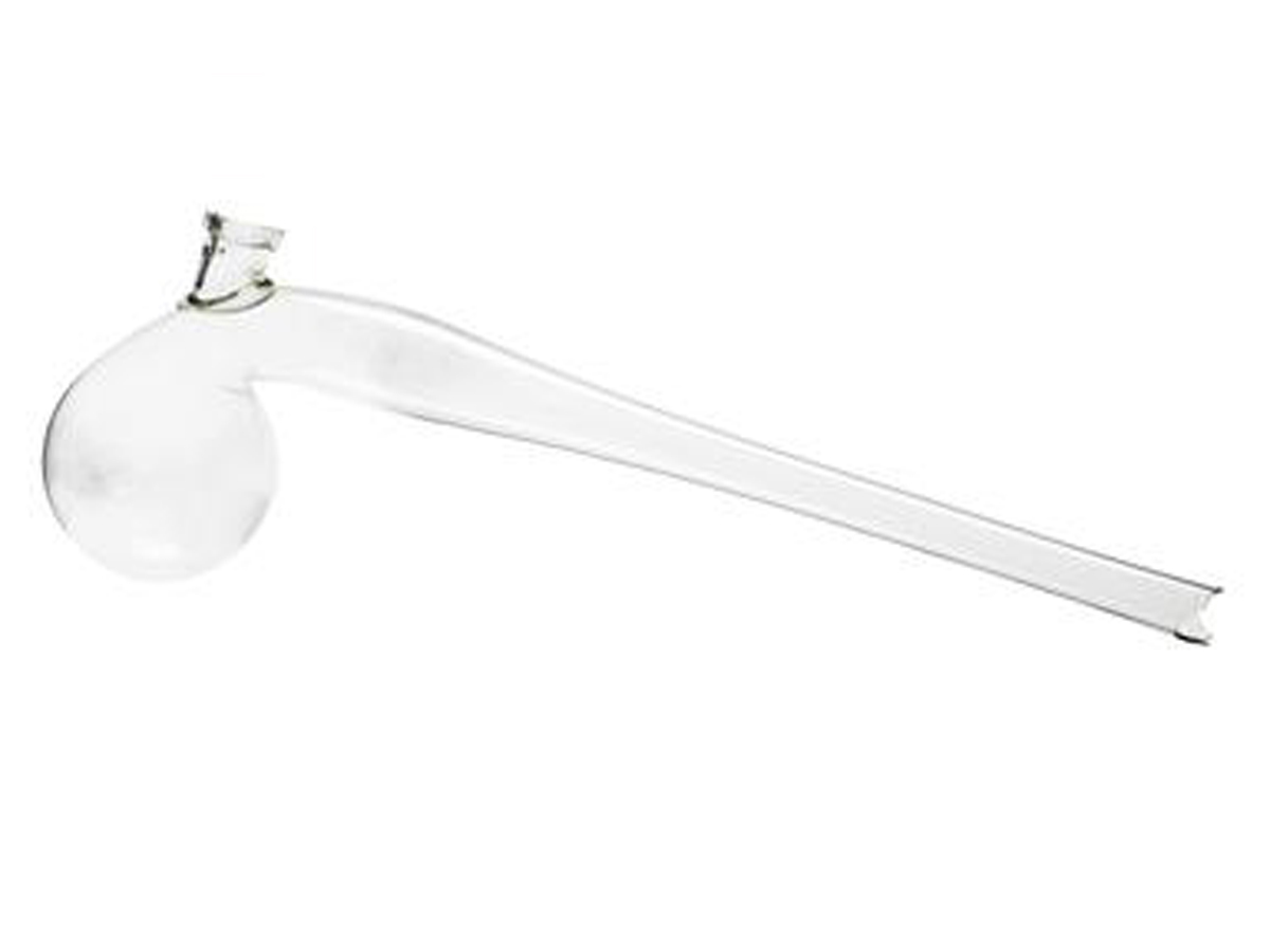 This retort with a tubular top opening dates from the 19th century and is of unknown origin and maker.