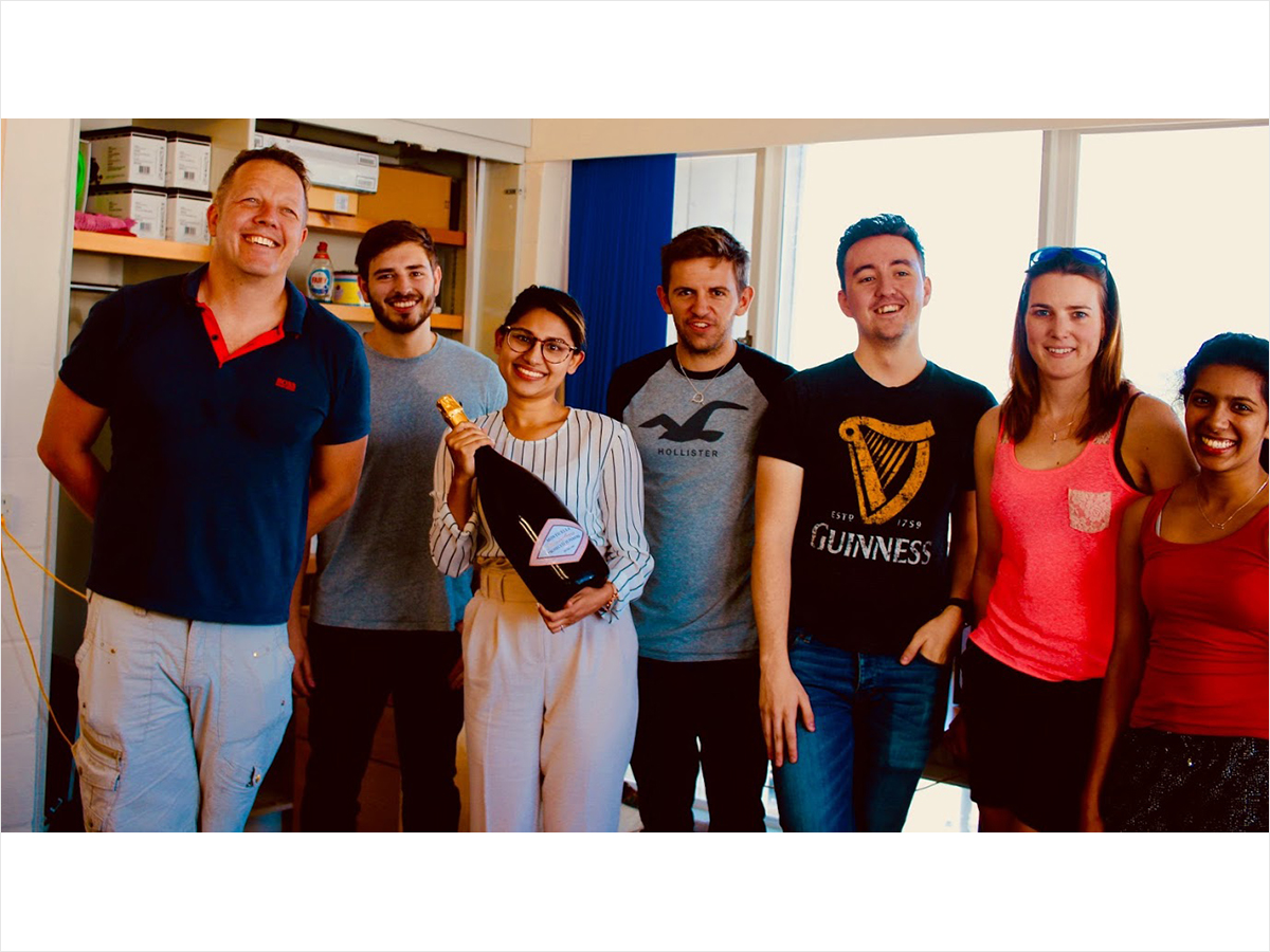 The Spencer lab, from left to right: John Spencer, Dr Andrew McGown, Dr Raysa Khan, Dr Storm Hassell-Hart, Anthony Edmonds, Ella Lineham and Arathy Jose. Picture: © John Spencer