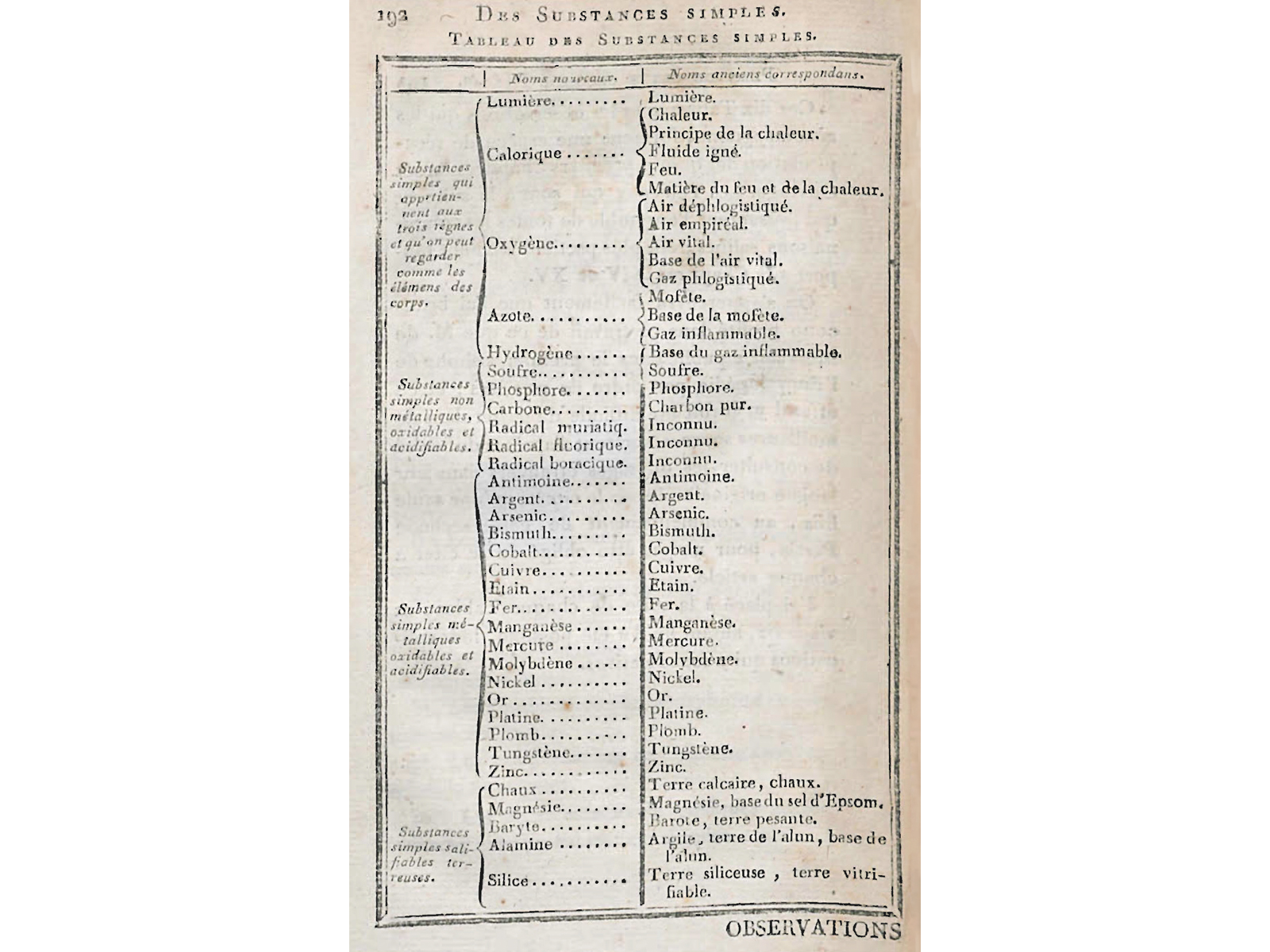 The 'Traite Elementaire de Chimie' listed 33 substances Picture: © Royal Society of Chemistry