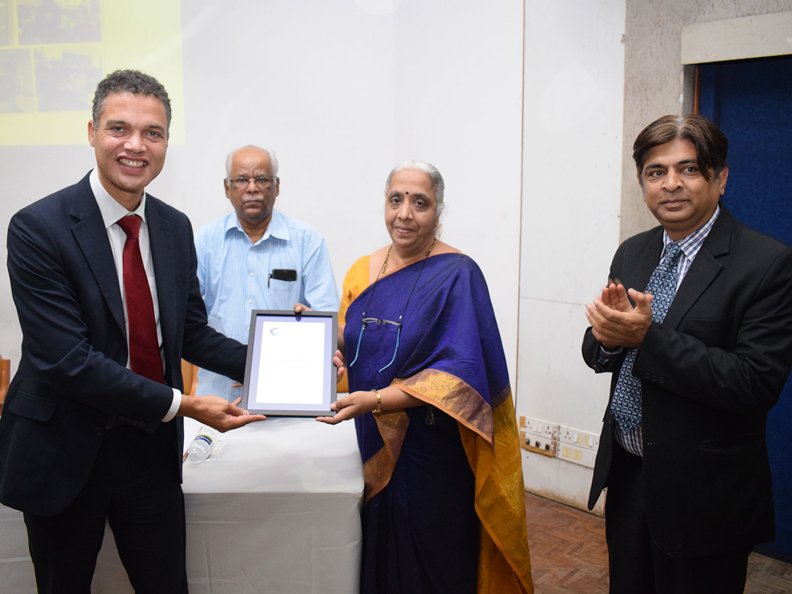 Professor Lakshmy Ravishankar AMRSC received her award from Richard Porte, Head of Strategic & Commercial Partnerships at the RSC Picture: © RSC West India Section