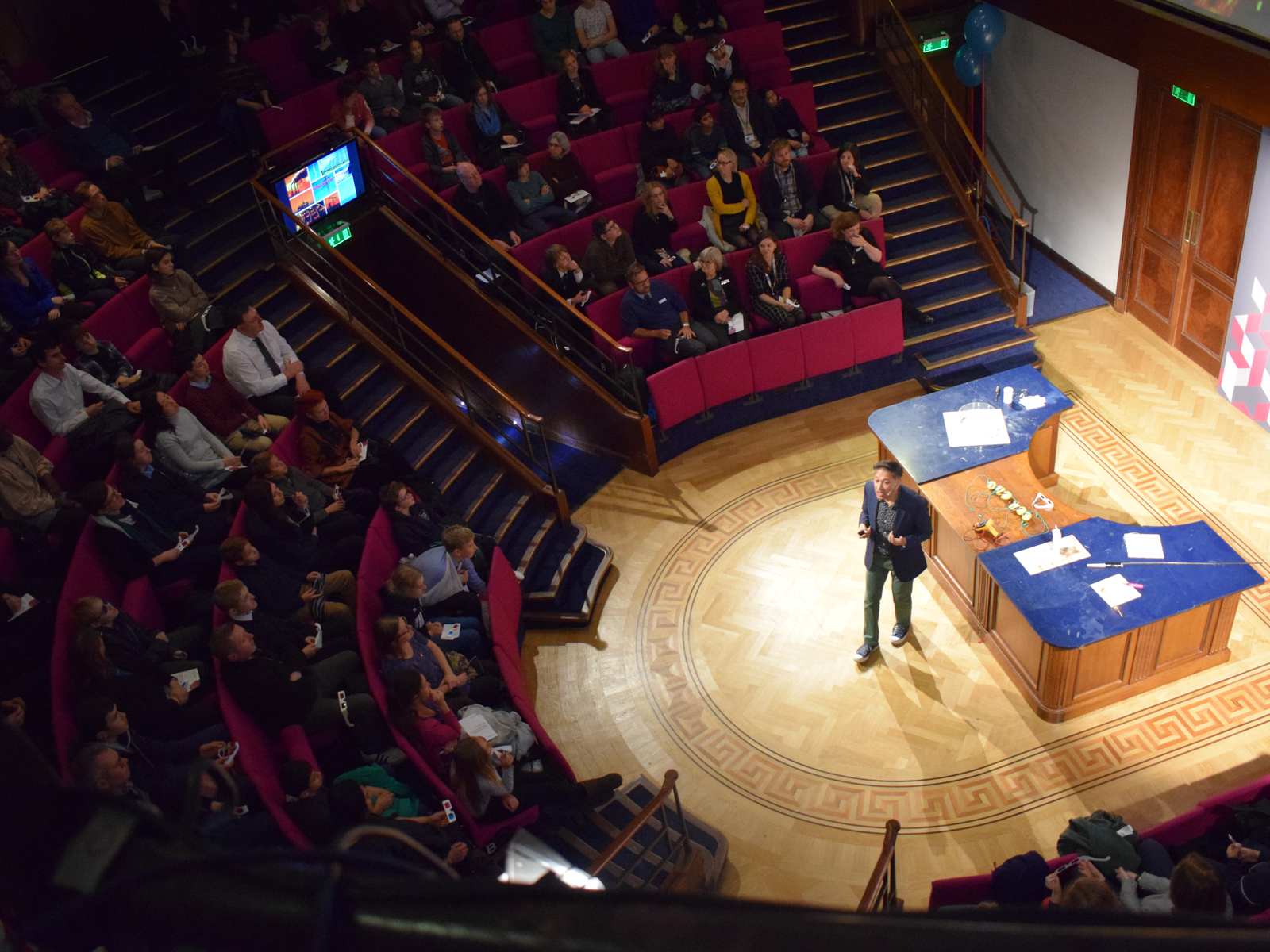 On Friday 15 November, we joined more than 200 guests from families and school groups, in the Ri’s famous Faraday Theatre, to hear Professor Saiful Islam give a thoroughly entertaining lecture on energy materials, including batteries and perovskites, as well chemistry’s crucial contribution to the fight against the climate emergency.