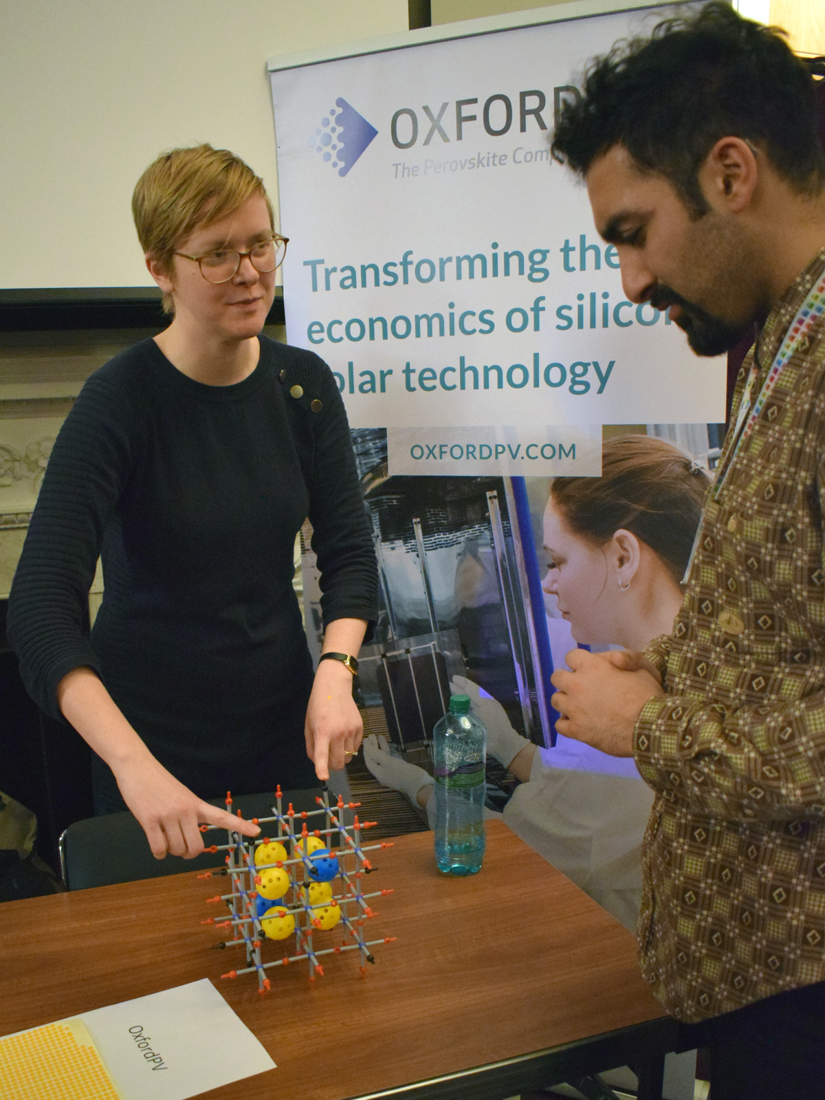 Alice Taylor, from Oxford PV, explaining the chemistry of perovskites to Hassun from our Public Engagement team Picture: © Royal Society of Chemistry