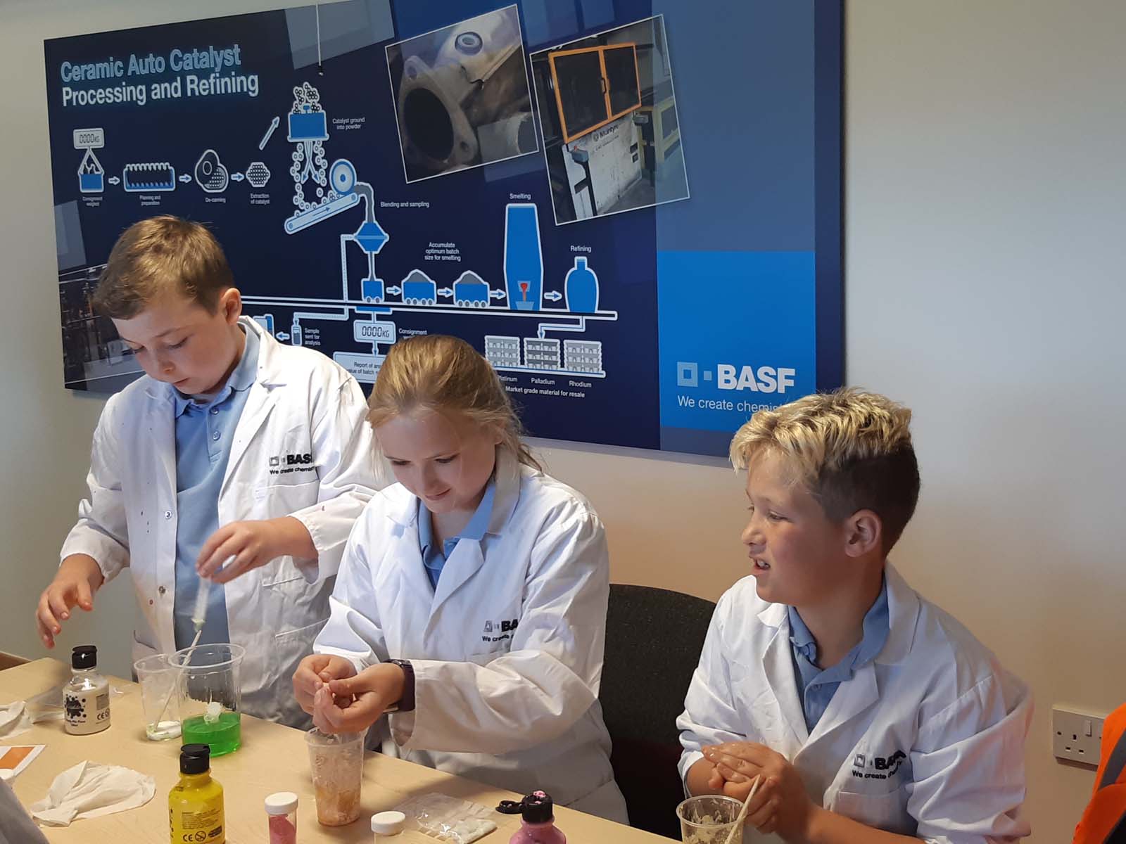 The workshops took place in five primary schools in the Forest of Dean during the summer term. Students who had demonstrated a keen interest in chemistry were invited to attend a morning of activities and a tour at BASF, Cinderford on 4 July.
