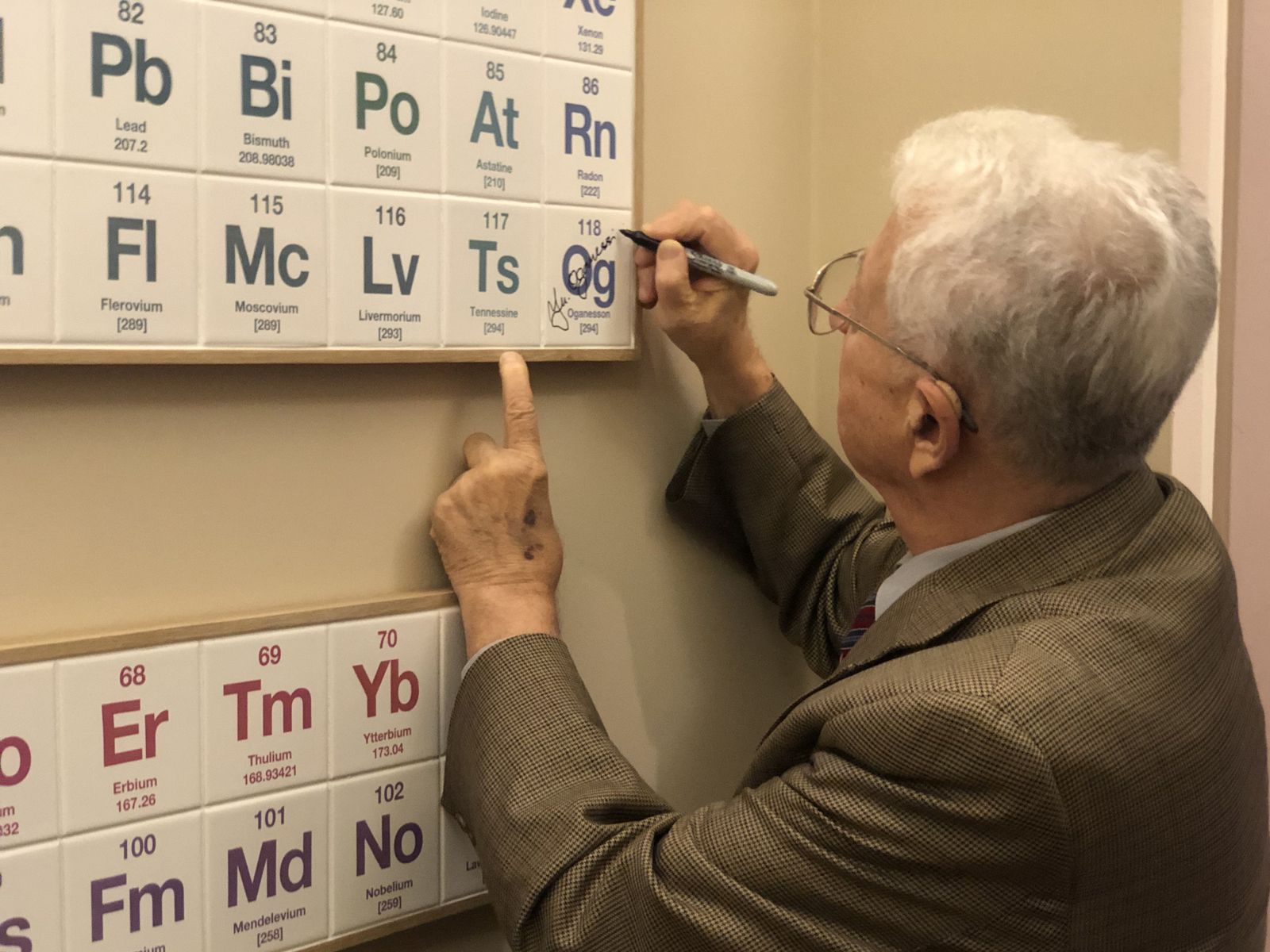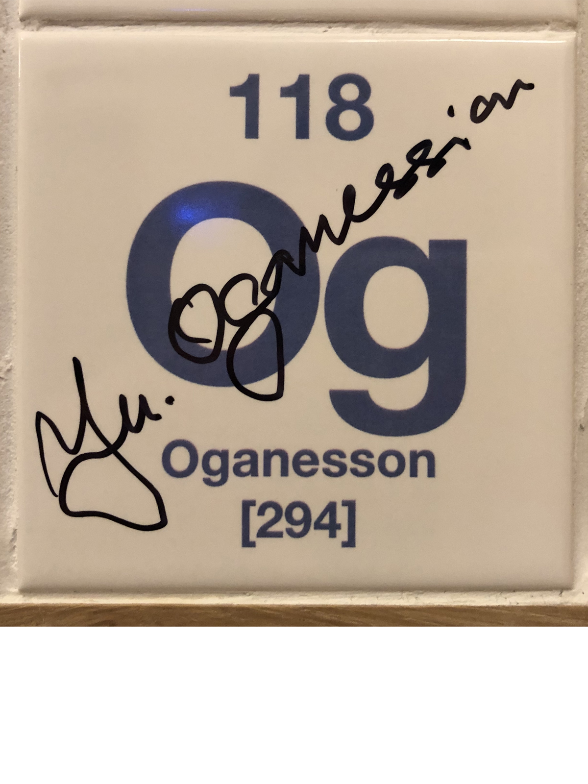 We're very proud to say that Professor Oganessian – the only person on earth with an element named after them – completed our new version by re-signing his name on element 118.
