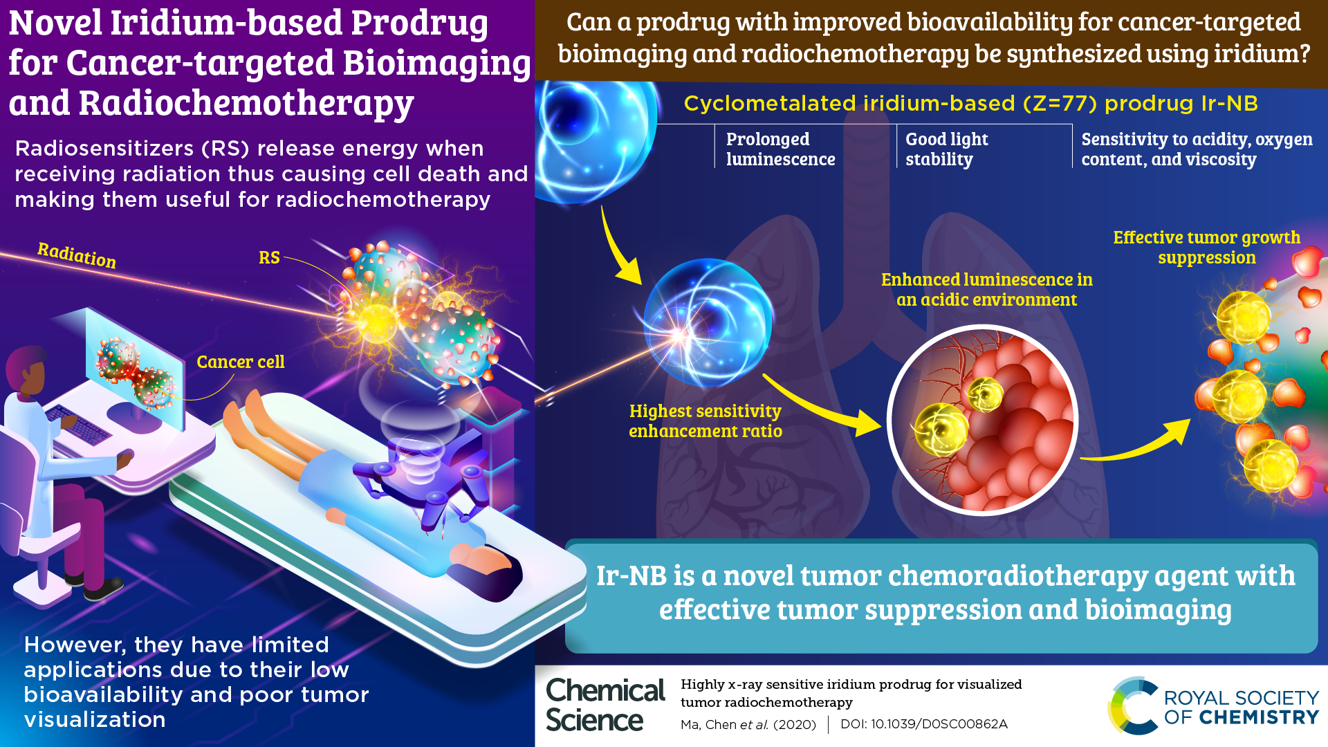 In our Chemical Science Pick of the Week, a novel cancer-targeting iridium complex was demonstrated to act as an effective radiosensitiser for image-guided cancer radiochemotherapy.