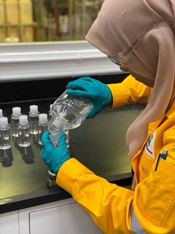 Nurida Mohd Yusop, Head of the Centralised Lab at PETRONAS Research, said turning their attention to how they can help as chemists was among the most effective things they could do quickly. She said: “Being scientists, we started discussing about formulating medical grade hand sanitiser to be distributed internally to our PETRONAS front liners, especially when we have all the basic ingredients ready at our research facilities.