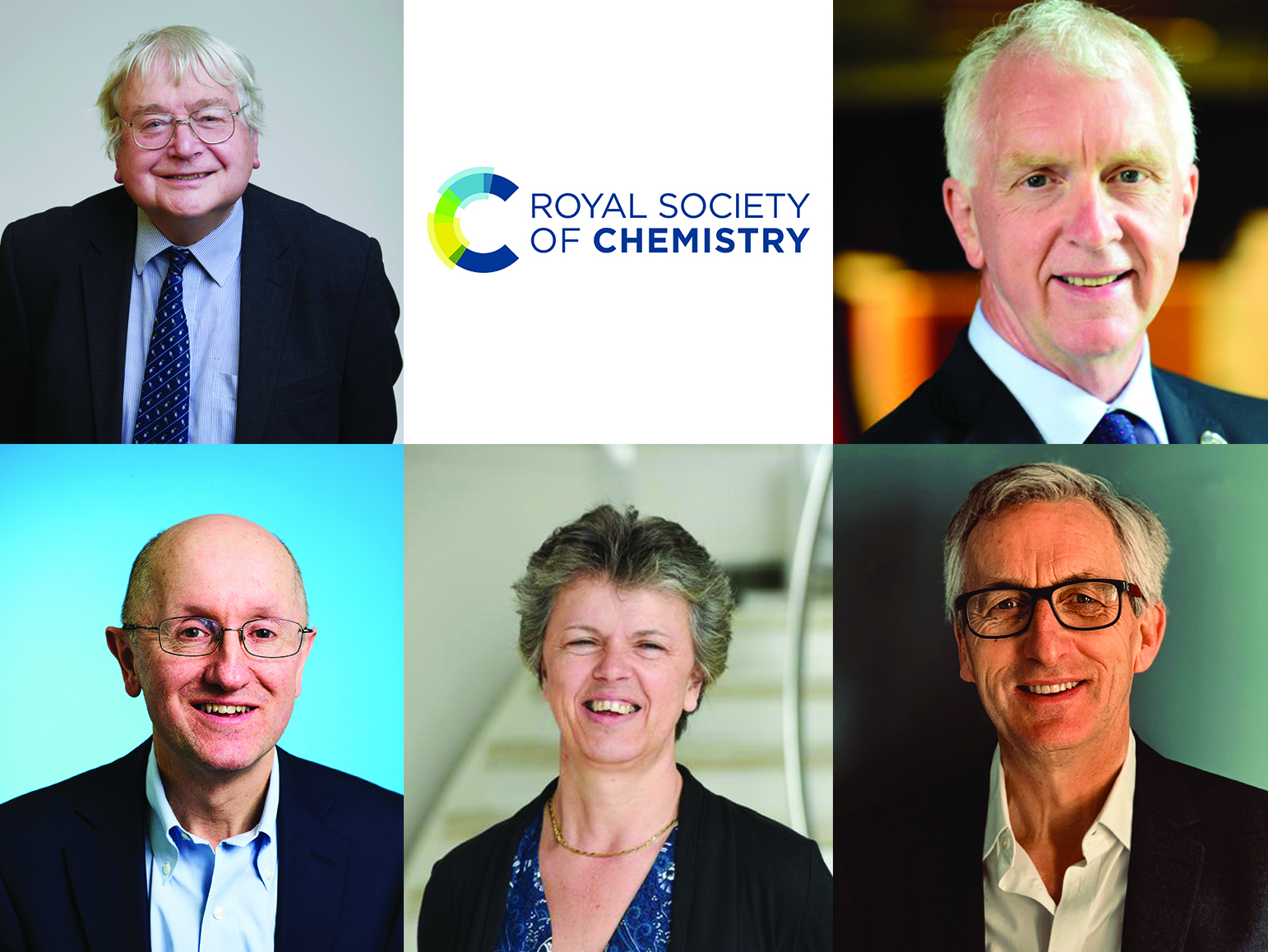 Our presidential candidates: Richard Catlow (top left), Roy Sandbach (top right), David Parker (below right), Gill Reid (below centre) and David Rees (below left) Picture: © Royal Society of Chemistry