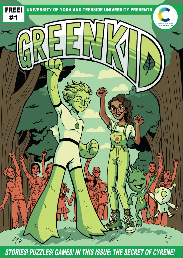 Dr Rob McElroy from the University of York collaborated with artists at Teesside University – three masters students led by Senior Lecturer Julian Lawrence – to create a comic to teach children about sustainability and solvents.