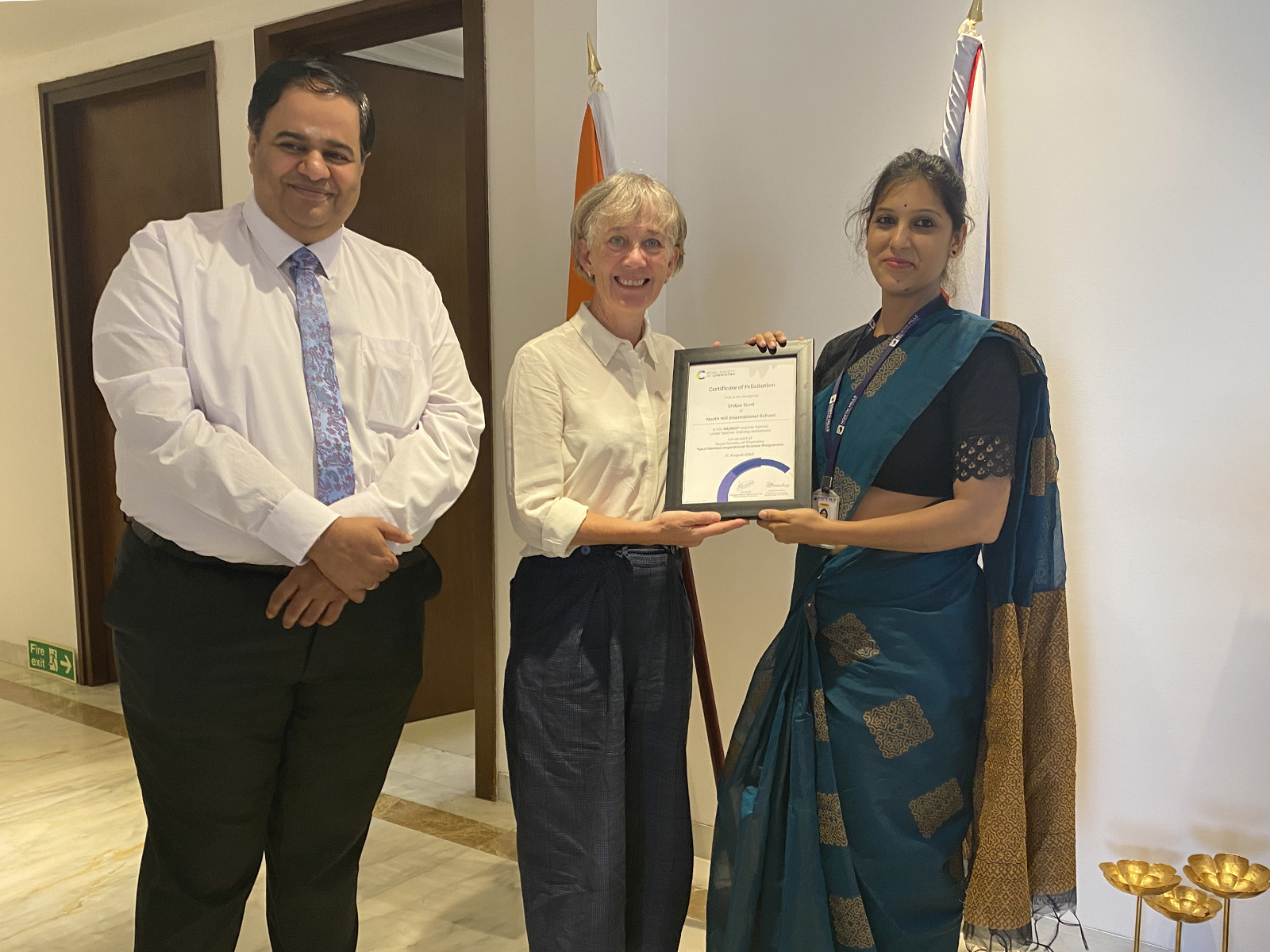 Professor Dame Angela McLean said: "The training of 40,000 teachers since 2015 by the Royal Society of Chemistry is no mean feat and is a credit to the programme trainers such as Jaya P Swaminathan who brought me up to speed on how the training works. It was a pleasure to celebrate with Shilpa Sunil who is an excellent representative of the talent and expertise that students in India will benefit from thanks to the Yusuf Hamied Inspirational Science Programme.”