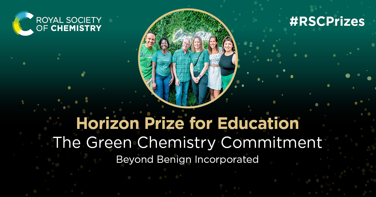Download celebratory graphic2025 Horizon Prize for Education: awarded for fostering a green chemistry community of practice that empowers educators across the world to integrate green chemistry into the science curriculum
