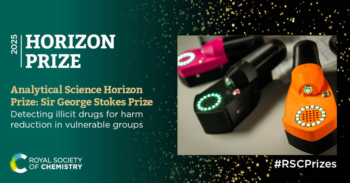 Download celebratory graphic2025 Analytical Science Horizon Prize: awarded for the application of portable technologies to identify synthetic drugs with positive impact on policing and harm reduction.